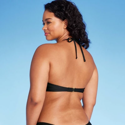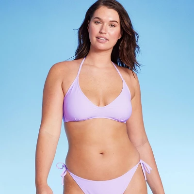 Scoop-front bralette bikini top from Wild Fable™. Made from soft fabric with spandex for stretchy comfort in and out of the water. Removable cups provide customizable coverage. Adjustable straps plus behind-neck tie and back hook offer the perfect stay-put fit.