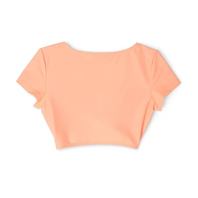 Bralette bikini top from Wild Fable™ in a solid hue with a plunging V-neckline and a twist-front accent. Designed in a crop top silhouette with short sleeves. Made of a soft, stretchy fabric with removable cups. Pullover style completes the look and allows for easy on and off.